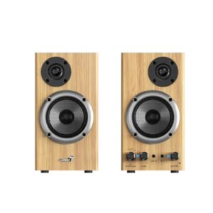 El altavoz de bajos con forma de circuito de carreras ofrece frecuencias bajas y gamas medias excepcionales, mientras que un altavoz de agudos independiente produce frecuencias altas nítidas y claras.
